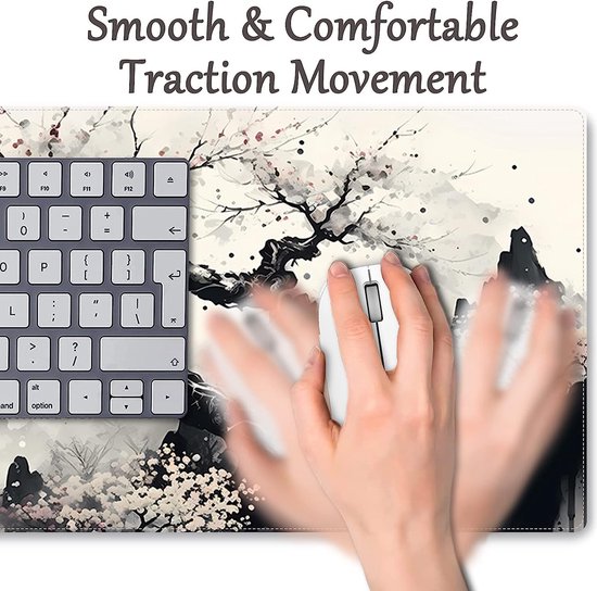 Japanse Muismat Met Kersenbloesem Design - Grote Bureaumat 80x30cm Voor Gaming En Kantoor